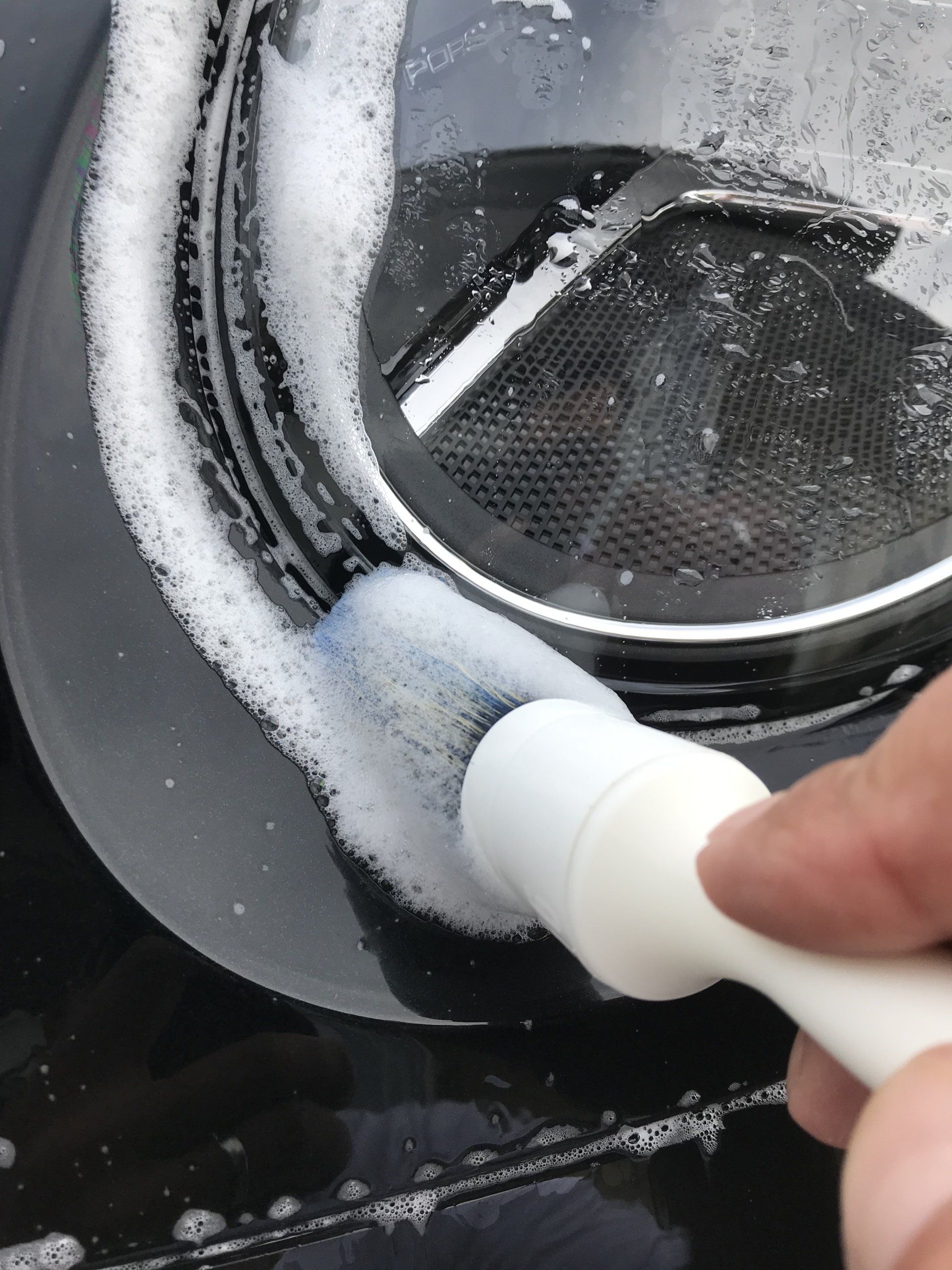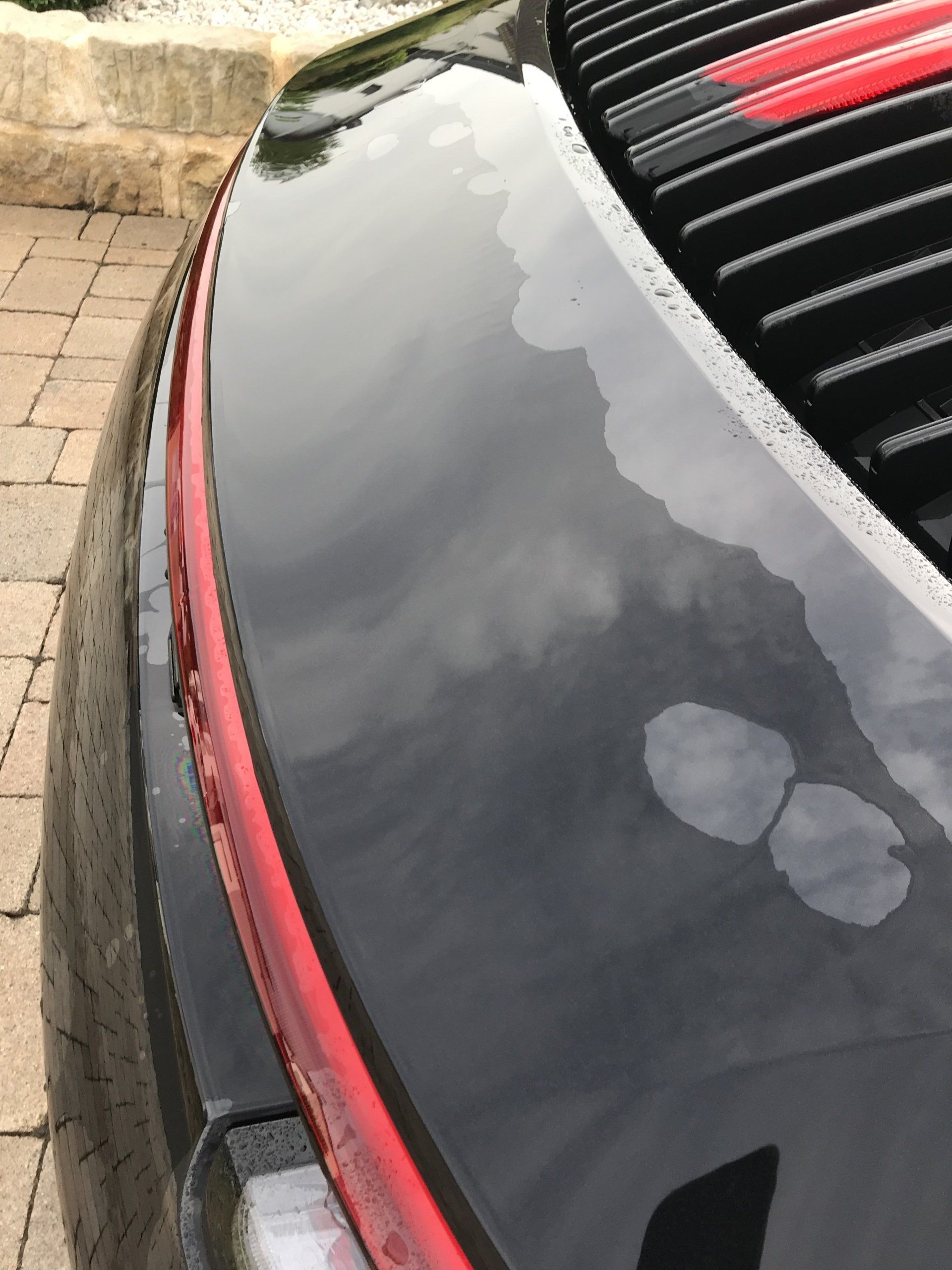 Der Wagen war werksseitig an Haube, Stoßstange und Kotflügel teilfoliert. Ein Ablaufverhalten von Wasser war hier absolut nicht vorhanden. Das stand regelrecht und riss nicht auf.